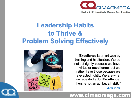 Welcome to Workshop 7 Leadership Habits to Thrive & Problem Solve Effectively